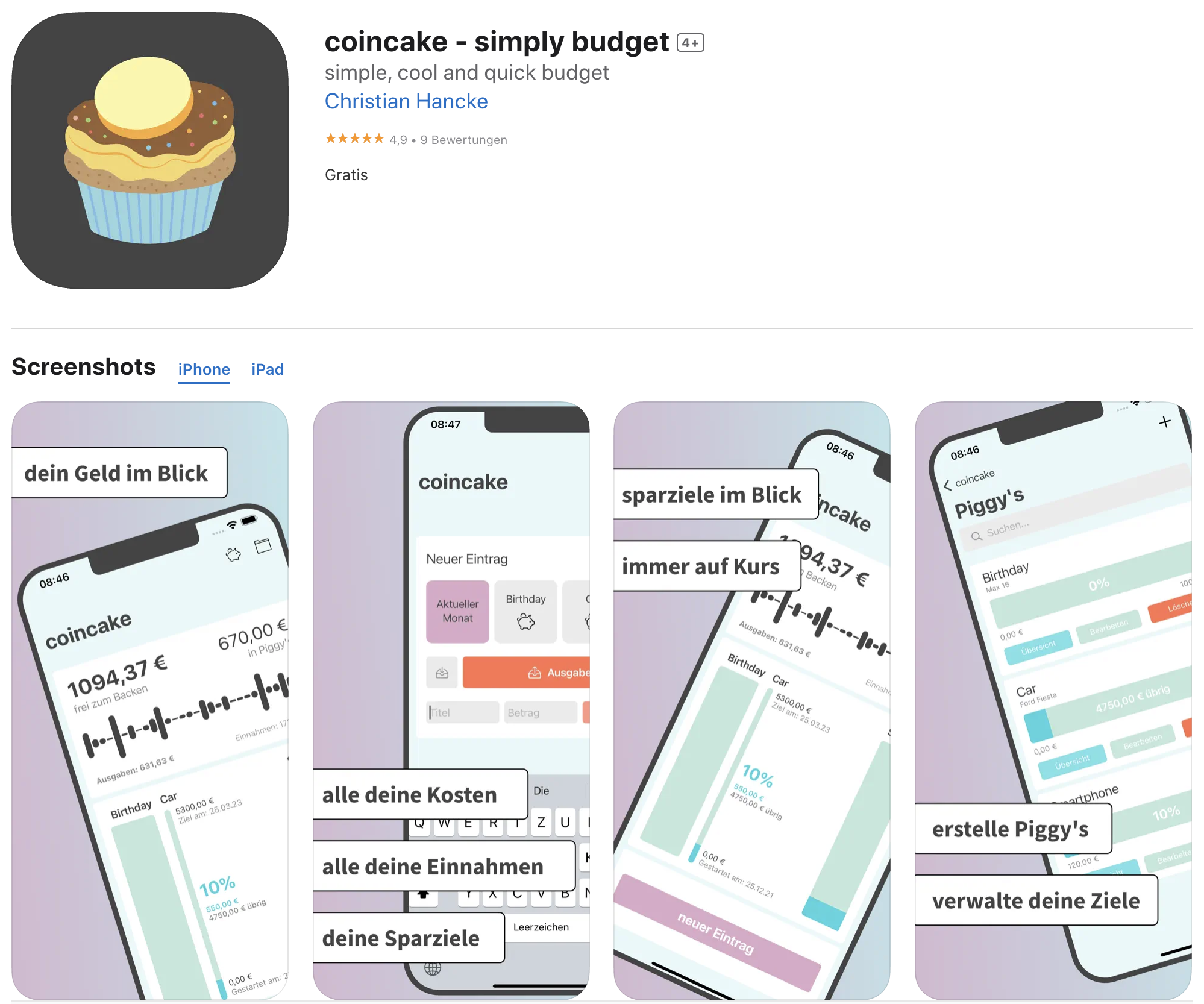 Füge einfach deine Einnahmen und Ausgaben der App hinzu. Monatliche Zahlungen wie Miete, Strom, Smartphone kannst du genau so wie monatliche Einnahmen einfach markieren.